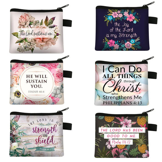 Christian Bible Verse Coin Purse Women Wallet the Lord Sustains Me Money Bag Small Handbag Floral Purses ID Credit Card Holder