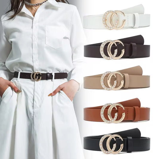 Women'S Leather Belt Accessory: Antique Silver Double C-Ring Buckle