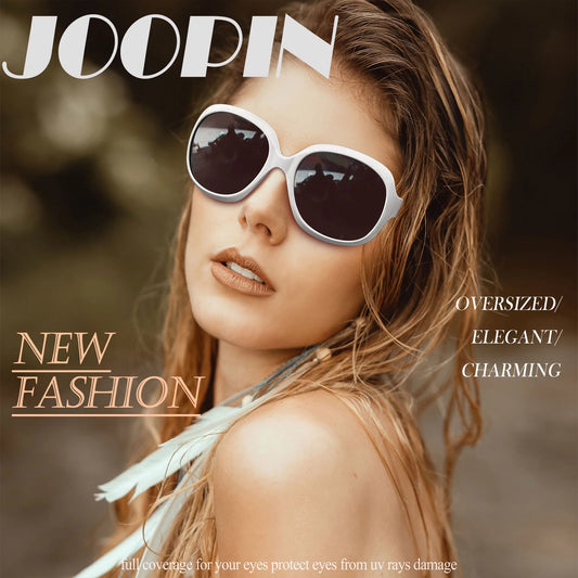 Oversized Polarized Sunglasses for Women, Ladies Vintage Thick Big Frame Sun Glasses Shades (Shiny White)