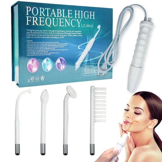 "Ultimate High Frequency Facial Skin Care Kit: 4Pcs Device Set for Acne Treatment, Hair Care, and Professional Results - Comes in a Stylish Gift Box!"