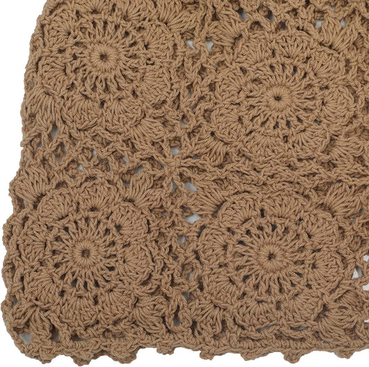 Women Cotton Crochet Slouchy Beanie Hat Handmade Knit Cutout Summer Floral Skull Cap